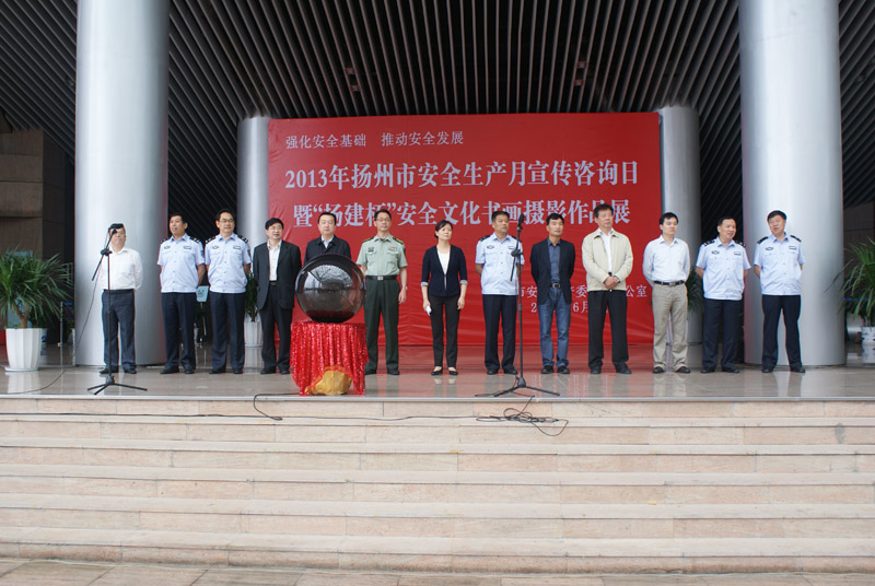 6月9日上午,2013年扬州市“安全生产月”宣传咨询日暨“扬建杯”安全文化书画摄影作品展在市美术馆北门广场举办。副市长张宝娟出席了当天的活动,并和广大市民一同参观安全文化书画摄影作品。市安监局、交通局、公安局、建设局、气象局、质监局等单位领导,以及部分驻扬单位职工代表,共计400余人参加了活动。