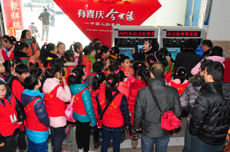 1月22日,来自扬州报业传媒集团的60多名小记者来到扬州汽车站,观看了GPS监控中心、售票大厅和自助售票机工作情况,体验了车站安检、检票工作,并采访了金沙娱场城app7979总经理、党委书记吴忠俊……他们在现场亲身体会了繁忙而和谐的2014年春运。