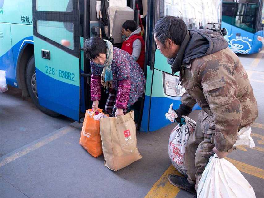 图一:来自连云港的老王夫妇。老王61岁,老伴59岁。生有一双儿女。儿子在丹阳打工,女儿在老家工作,都已各自成家。老两口在扬州施桥承包了30亩地。2月8号上午,老两口带着孙女来到扬州汽车西站,老伴儿准备带孙女去丹阳儿子家过年。