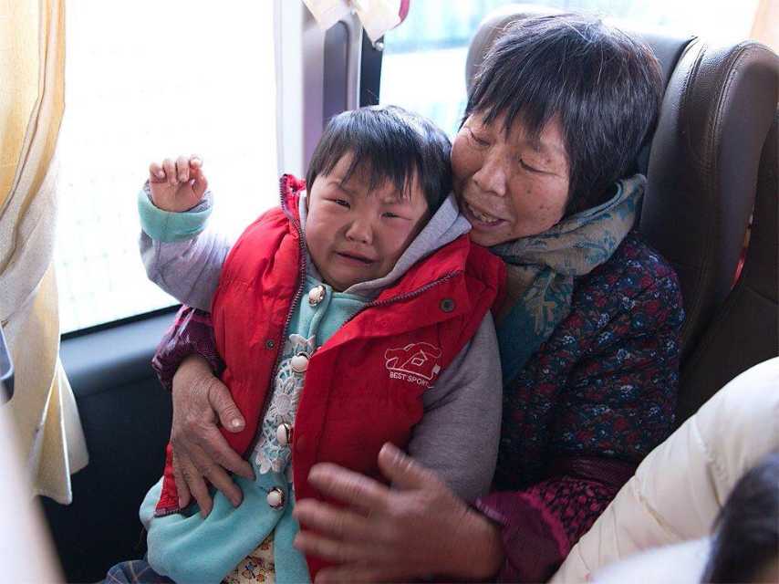 图五:刚刚坐定,小孙女跟爷爷说再见的时候忍不住哭了……