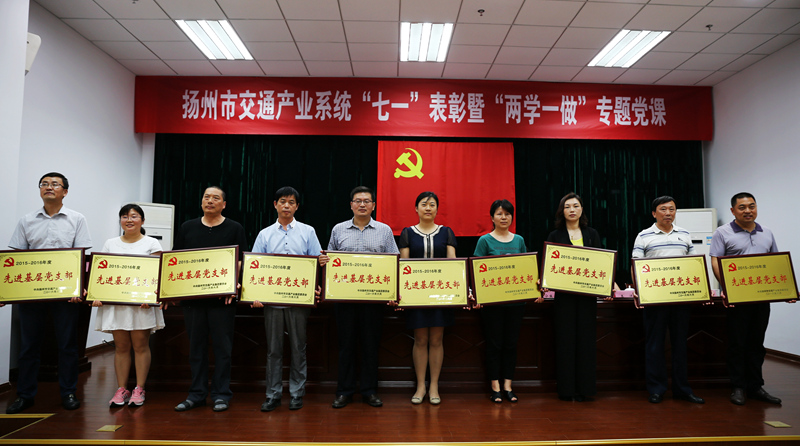 6月30日,市交通产业集团召开“七一表彰”暨“两学一做”专题党课,会上,集团公司扬州汽车站、快客、五金市场等3个党支部、郭俊、赵磊等2名优秀党务工作者、李棣、许弘、张勇、杨惠森、姜方宏、王建清、周庆文、李向奎、刘凯文、梅波等10名优秀共产党员受表彰。