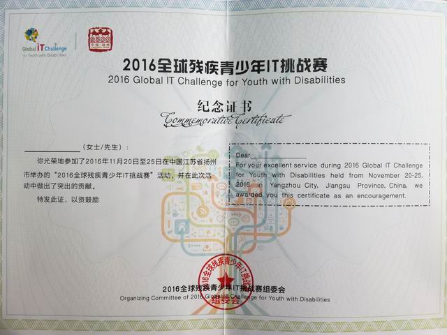 2016全球残疾青少年IT挑战赛经过4天激烈角逐,于11月24日在扬州圆满落幕。此次比赛共有来自16个国家的104名选手参赛,相关的IT论坛及文化活动也同期举行。金沙娱场城app7979凭借着过硬的资质和良好的口碑,有幸为此次比赛和论坛活动提供了会务用车服务。