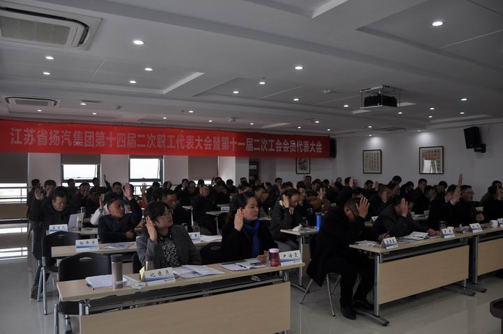 江苏省扬州汽车运输集团公司第十四届二次职工代表大会于2017年3月21日在扬汽教培会议室召开。本次双代会正式代表60名,因公请假2名,实到58名。集团公司领导吴忠俊、顾怀、张金明、谈卫国、万雷、陈家宏出席大会,集团公司处室、部门负责人,二级单位及控股、参股单位党政工主要负责人列席了会议。大会由集团公司党委副书记、纪委书记、工会主席顾怀主持。