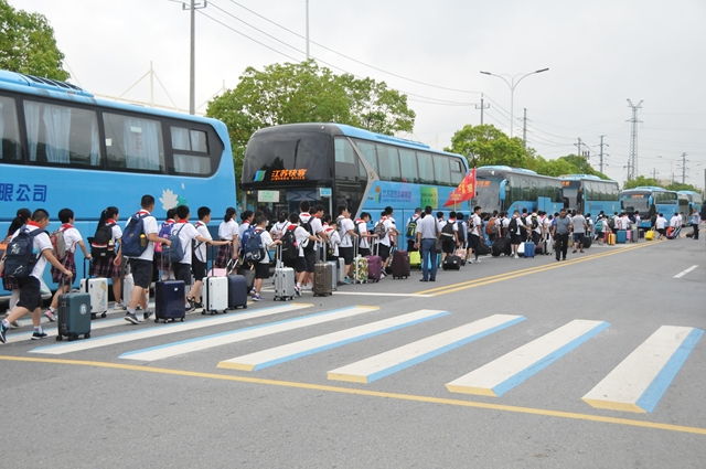 8月18日上午,扬州树人中学初一年级的新生走进校园,开启了自己的初中生活。他们的第一节课就是前往宝应接受新生军训。