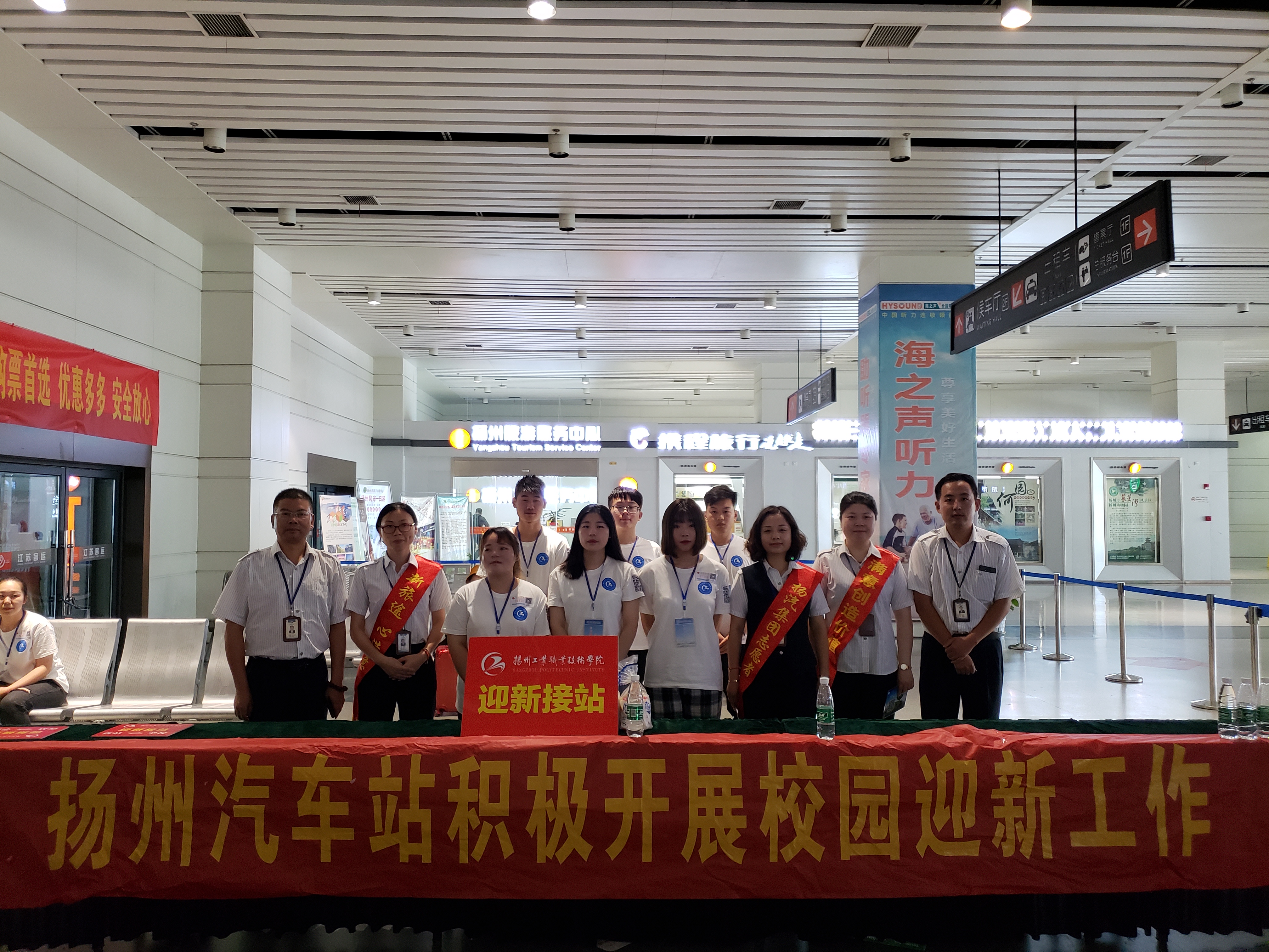 今年开学伊始,东、西两站便在车站出口醒目区域设置了“迎新”驿站,配备了大量的车站志愿者和保安人员为初来乍到的报到新生以及护送的家长们提供茶水、简易药品、手推车、充电宝、针线包等便民服务,不少外地来扬的新生家长纷纷感叹道:扬州不但环境美,扬州的人更热情!