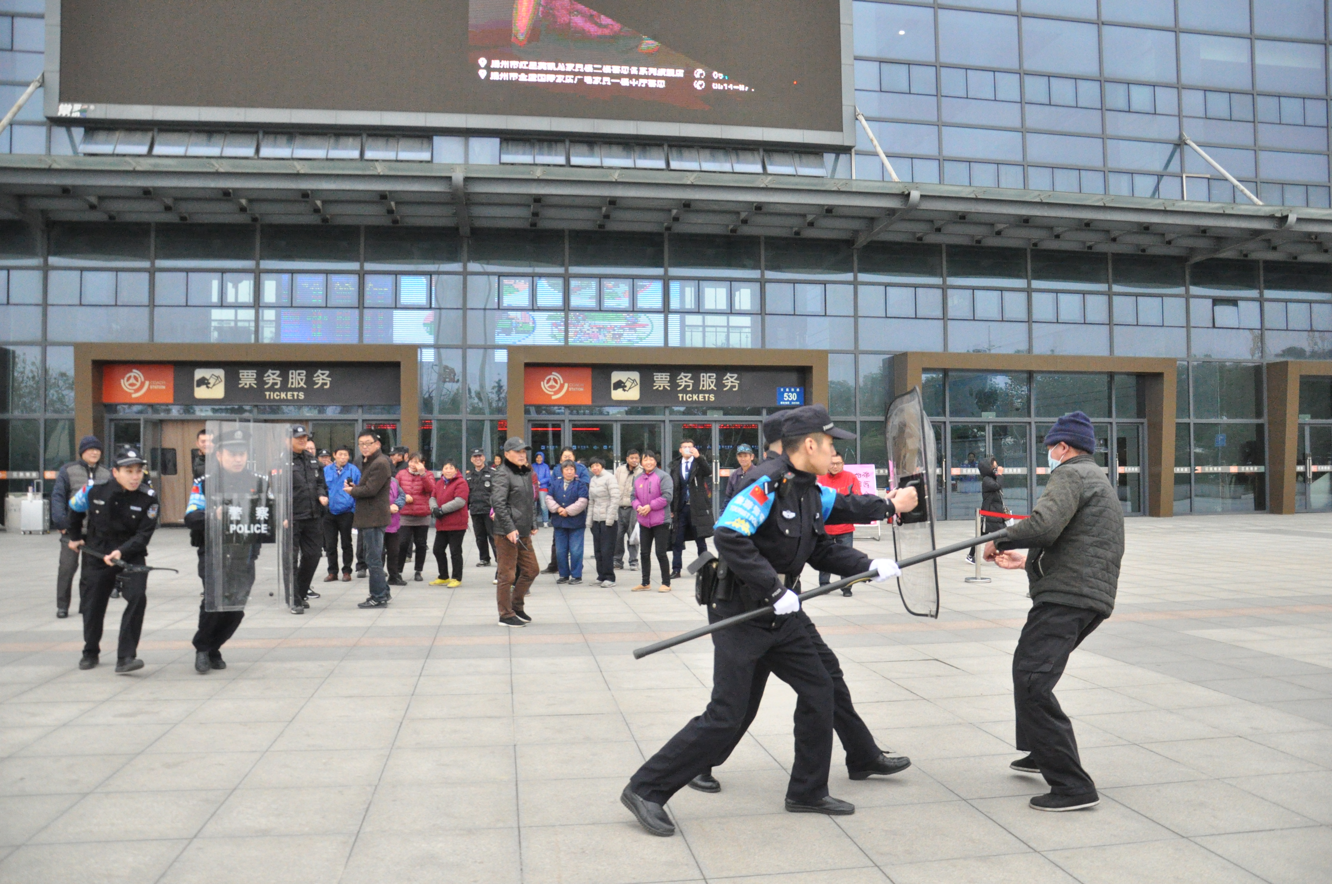 为有效防范公共场所可能发生的暴力恐怖事件,加强车站工作人员安全防范意识,提高对突发事件的应急处置能力,12月7日下午,扬州站联合扬州市公安局公交治安分局汽车总站派出所,在站前广场开展年度反恐防暴演练。