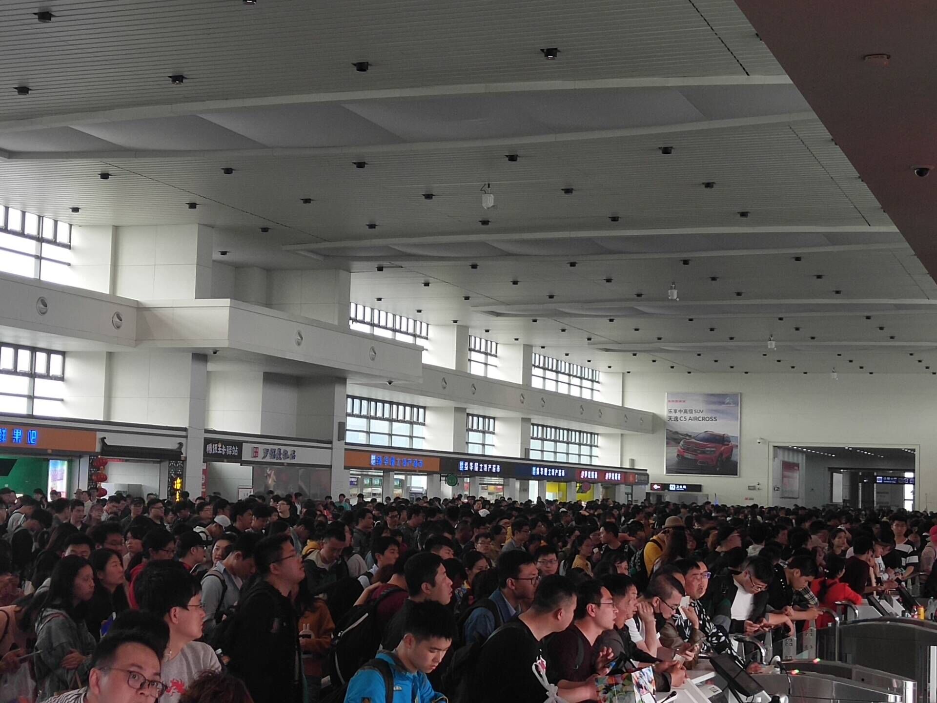 节日期间,运调部门根据运输客流情况以及现场管理规范要求,根据客流情况提前调整班次门号,减少现场的压力;根据班车班次时间,安排专人控制班次车辆上档、等候或停放在待档区;遇旅客乘车高峰,保安在一楼电梯口设置临时闸道,按照发车时间顺序控制进入候车厅的人流量,确保候车厅安全有序;班车发生晚点情况,使用车站广播每五分钟循环播放,直至班车发班;车站行管人员现场支援,做好旅客的安抚、咨询、引导上车等工作,实行每个门号由专人负责,举牌引导旅客上车,确保旅客走了,走好。