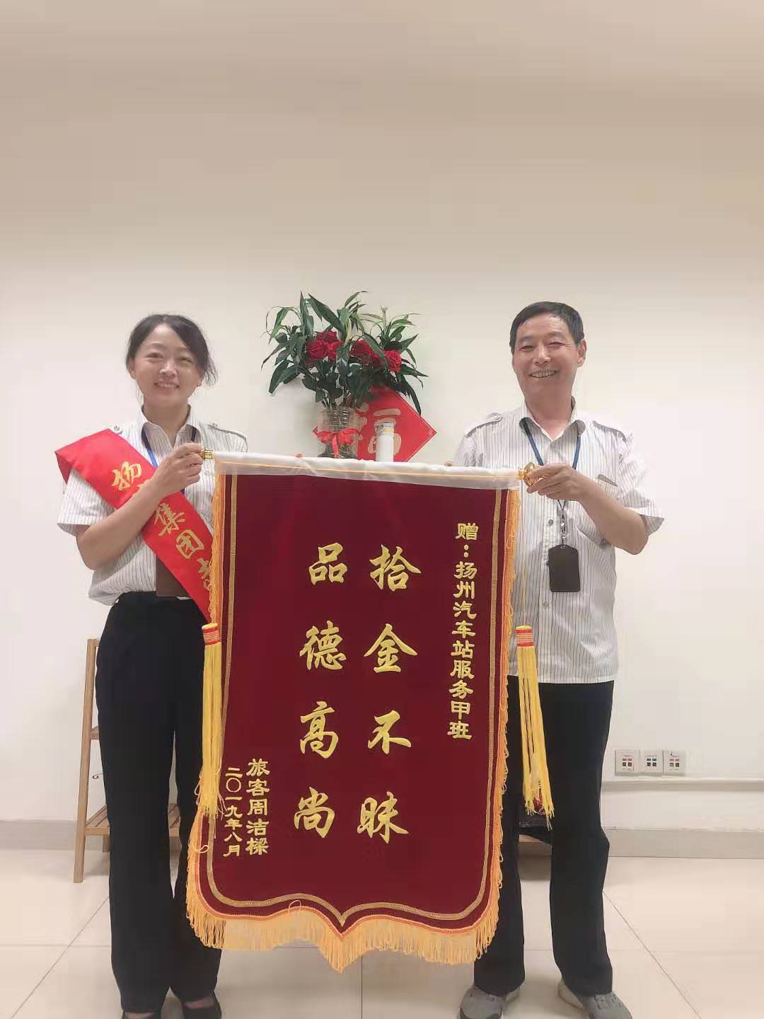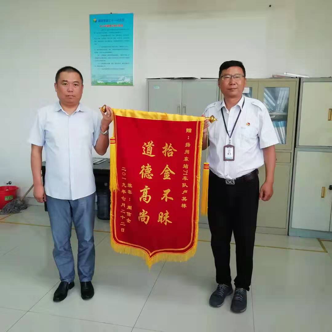 7月29日上午,扬州汽车客运东站收到旅客周信全送来的锦旗,称赞驾驶员卢其栋“拾金不昧,道德高尚”。据了解,7月20日上午7点,旅客周信全不慎将包遗忘在了从扬州东站到南京的车上,包里有身份证、银行卡、现金以及其他个人物品。当日值班驾驶员卢其栋在车辆抵达南京车站后,在检查打扫过程中,发现了周信全遗失的挎包,并将此事及时上报调度室,并于第二日交还该旅客。