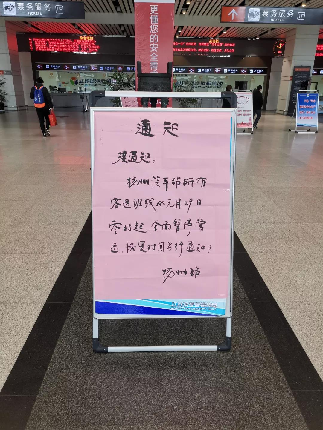 停运不代表我们将停止工作,我们扬汽人将继续做好对旅客的宣传解释工作和退票服务工作,并对场站进行严格消毒,封存所有运输车辆,随时做好应急运输保障工作准备,与全市人民、全国人民共同抗击疫情。