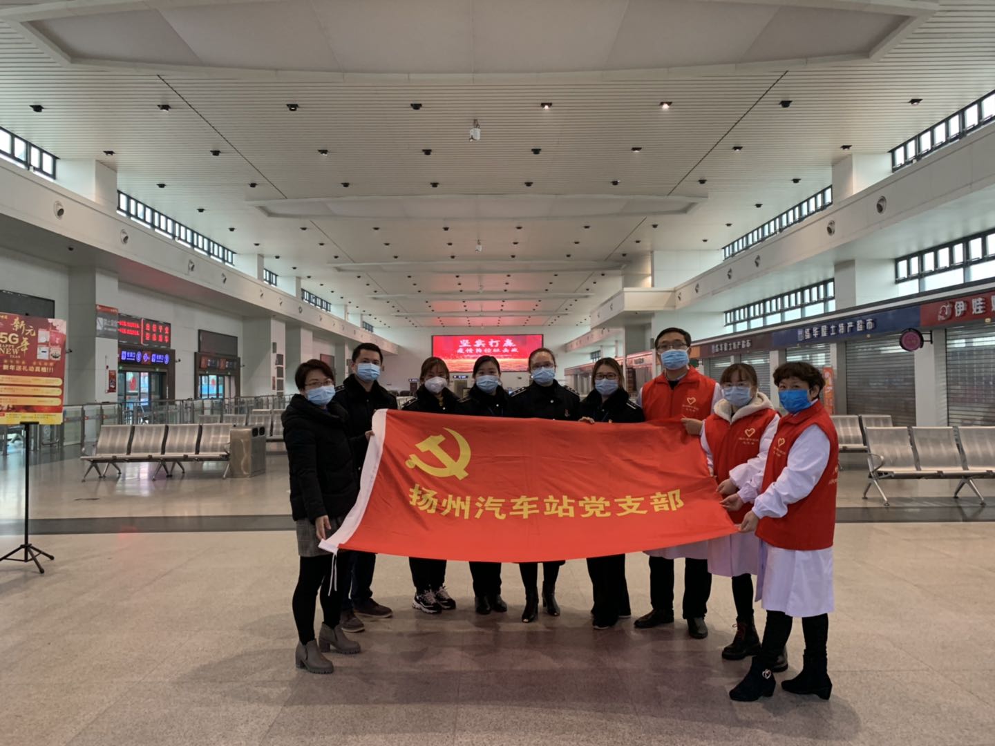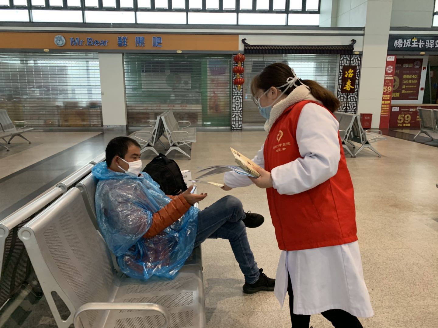 2月25日扬州站复工复产的第二天,扬州市中医院抗“疫”小分队为扬州汽车站里的旅客们和坚守在一线岗位的职工送来了抗疫药品和义诊服务。