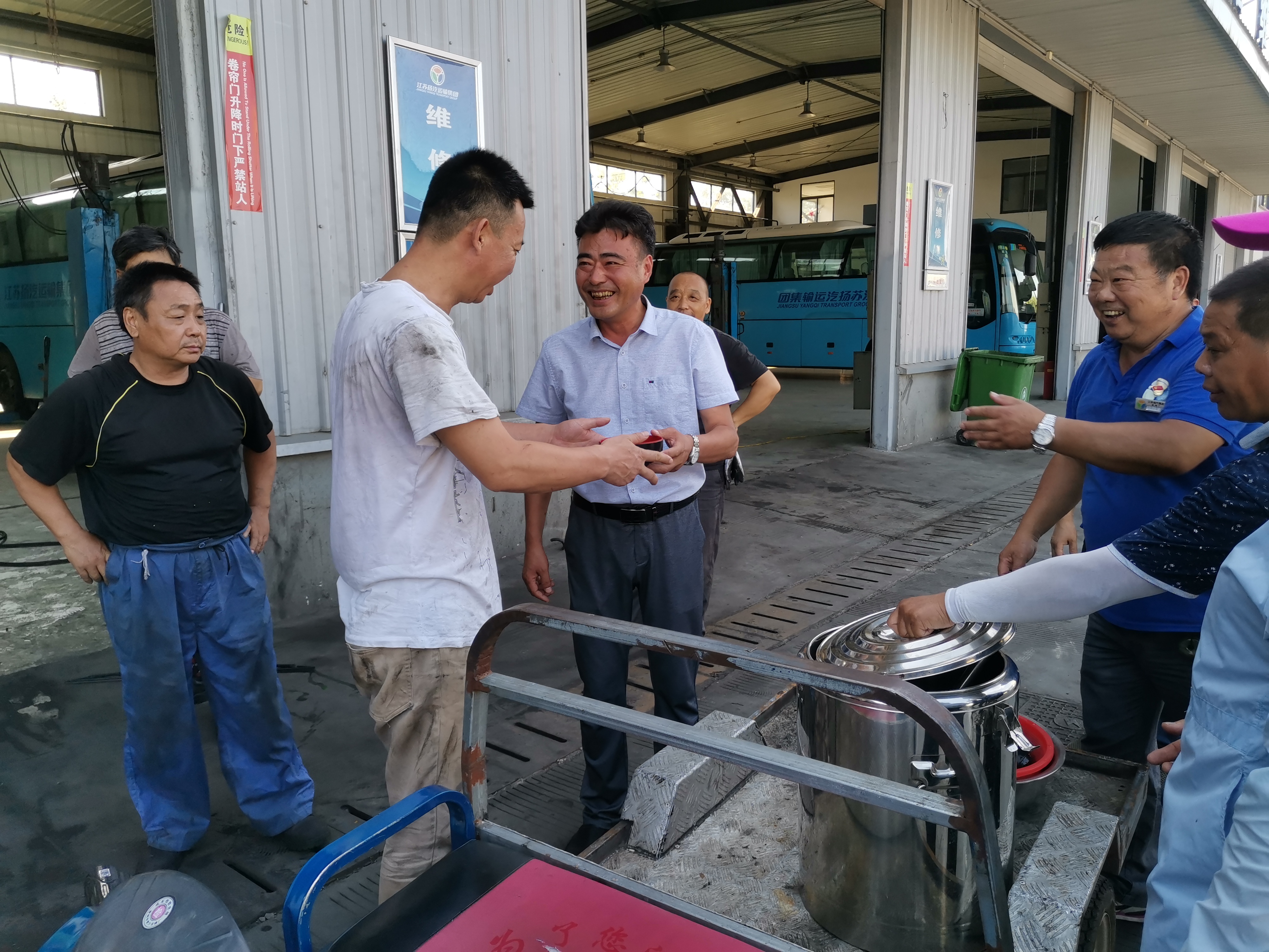 为做好防暑降温工作,保障生产一线职工的健康权益, 8月19日至20日,集团公司工会组织开展“送清凉”慰问活动,采购了近400份毛巾、肥皂、花露水、菊花茶等清凉祛暑用品。集团公司党委副书记、工会主席顾怀带队先后来到三大车站、修理厂和教培中心,把清凉用品送到一线职工手中,感谢他们的辛勤付出,并嘱咐大家合理调整作息时间,科学安排工作量,防范各类安全事故的发生。