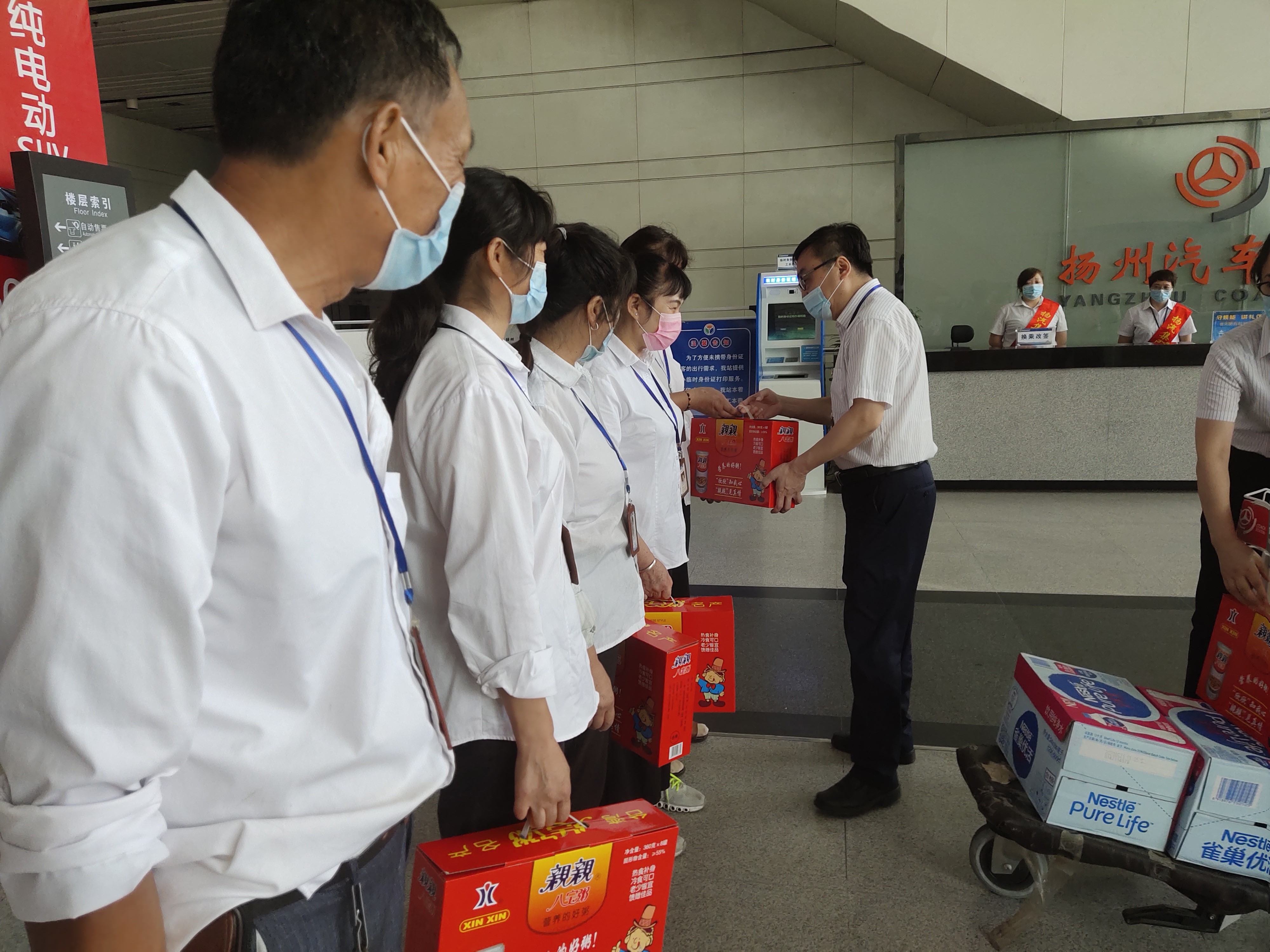 扬州站:在疫情防控进入常态化的情况下,扬州站疫情防控工作丝毫没有松懈,连日的高温,给扬州站疫情防控工作也带来了挑战。为了进一步鼓励一线职工的斗志,8月18日扬州站组织了送凉爽慰问活动,向高温天气中坚守岗位的志愿者、保洁等一线职工送去防暑降温慰问品,在慰问中叮嘱职工注意防暑降温、劳逸结合,做好安全保障措施,确保劳动安全和身体健康。同时也进一步勉励他们更好的做好服务工作,为打造平安扬州、幸福扬州、精致扬州做贡献。