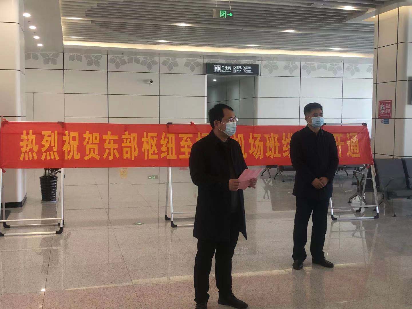 在东部枢纽交通中心现场,举行了简短的开通仪式,交通产业集团副总经理、金沙娱场城app7979党委书记、董事长龚宇峰和扬州泰州国际机场副总经理徐长富出席了班线开通仪式。龚宇峰董事长在致辞中表示,在西站、东站和东部枢纽设立扬泰机场候机楼,是认真落实市委市政府《关于做好2020年民生幸福工程的通知》文件精神的重要工程,是满足人民多层次多样化民生需求,不断提升城市客运接驳换乘水平的重要举措。随着东站和东部枢纽候机楼的设立以及机场班线的开通,扬泰机场在市区的客运服务网络基本形成,高铁和机场的零距离换乘成为现实,机场与城市的距离将被进一步拉近。