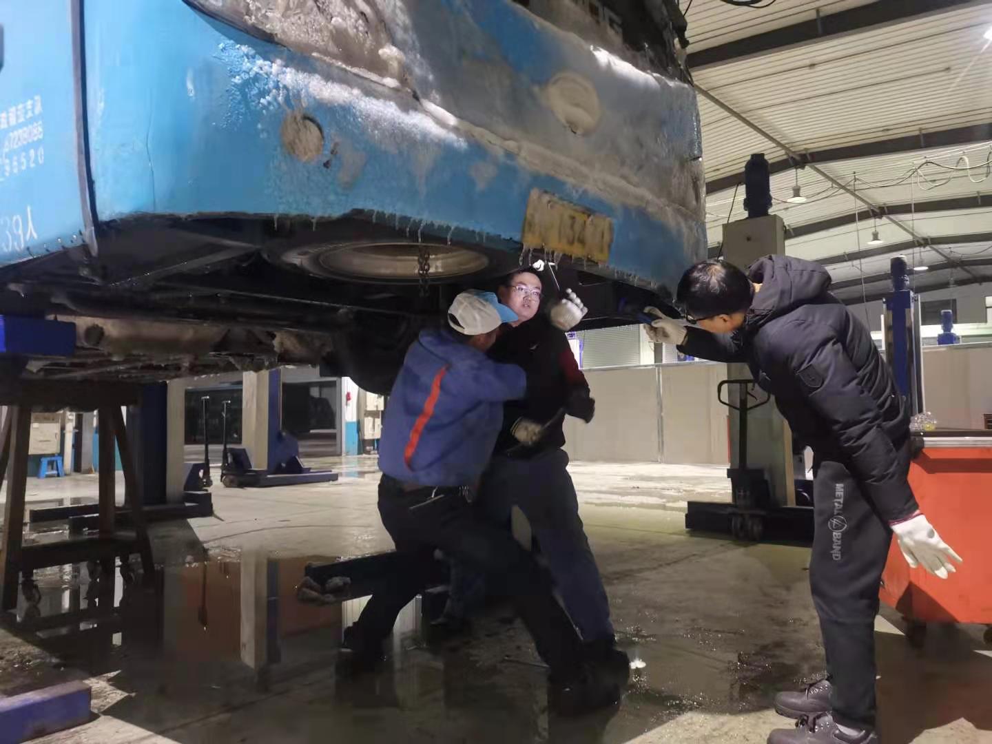 29日深夜修理厂对车辆进行抢修,扬汽出租的党和职工清除场地冰冻积雪,及时消除安全隐患;在大家的努力下,教培中心科目二考场已无积雪积冰,车辆均已调试完好。