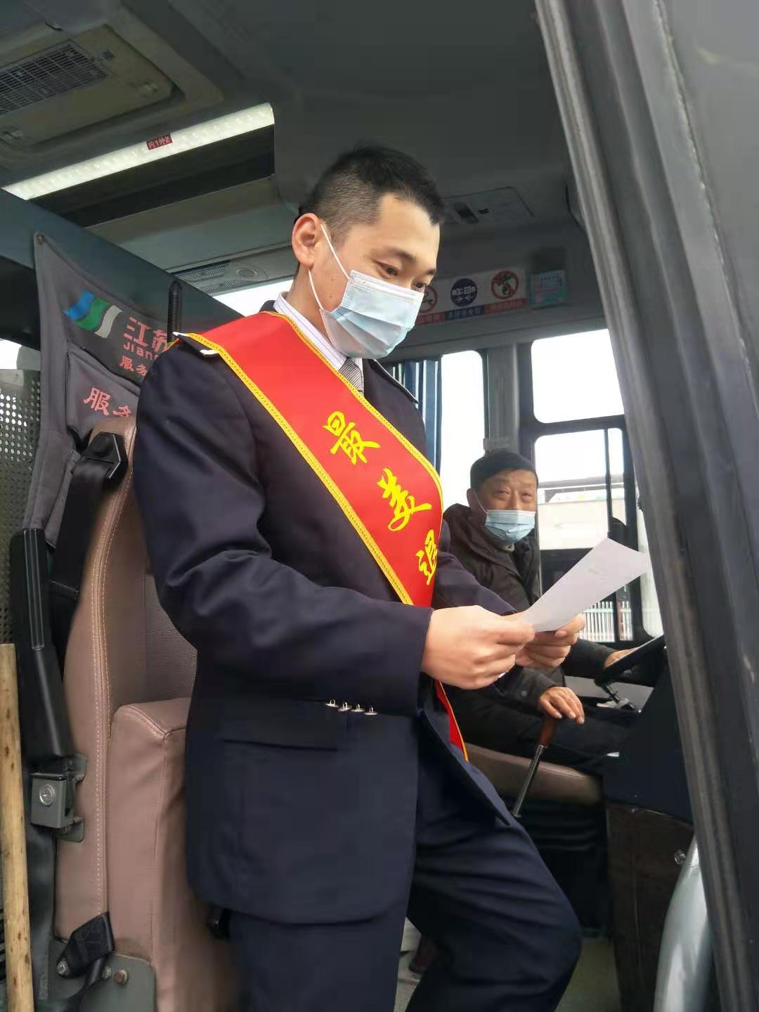 “您乘坐的车辆已经消毒过,请放心上车…,老人家,你俩戴的口罩破了,我这有新的,请你换上…,请大家保持一米距离检票,时间充裕,不会耽误大家行程…,请大家检票上车后,系带好安全带,口罩不能摘…”。一连串的温馨提醒和戴着口罩仍在眉宇间“跳跃”着的笑容,让旅客感到十分暖心。口不停、手不停每天数百遍地完美重复为旅客服务的场景,正是她几年军营生活、过硬作风养成的积淀,更是她退役转岗后,爱岗敬业的生动写照。前几日的一天下午,有位苏州的旅客一旁候车时,看到当班吴琳检票发车时娴熟的连贯动作和麻利果断指挥发车标准旗语手势时,情不自禁地掏出手机,“啪差…”拍个不停,嘴里还自言自语道:“这个画面好,这个画面好…”。