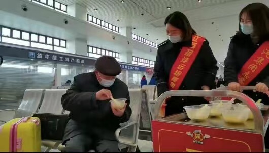 一位老先生端着汤圆,连声说谢,在品尝了汤圆之后,露出满脸笑容,满口称赞,称赞我们的工作热情、温暖,让身在异乡的旅客们也感受到家的温馨。在给旅客送温暖、送祝福的同时,车站领导,也未忘记一线职工,也给他们送上了甜甜的汤圆和节日祝福,祝他们生活团团圆圆,日子甜甜蜜蜜。