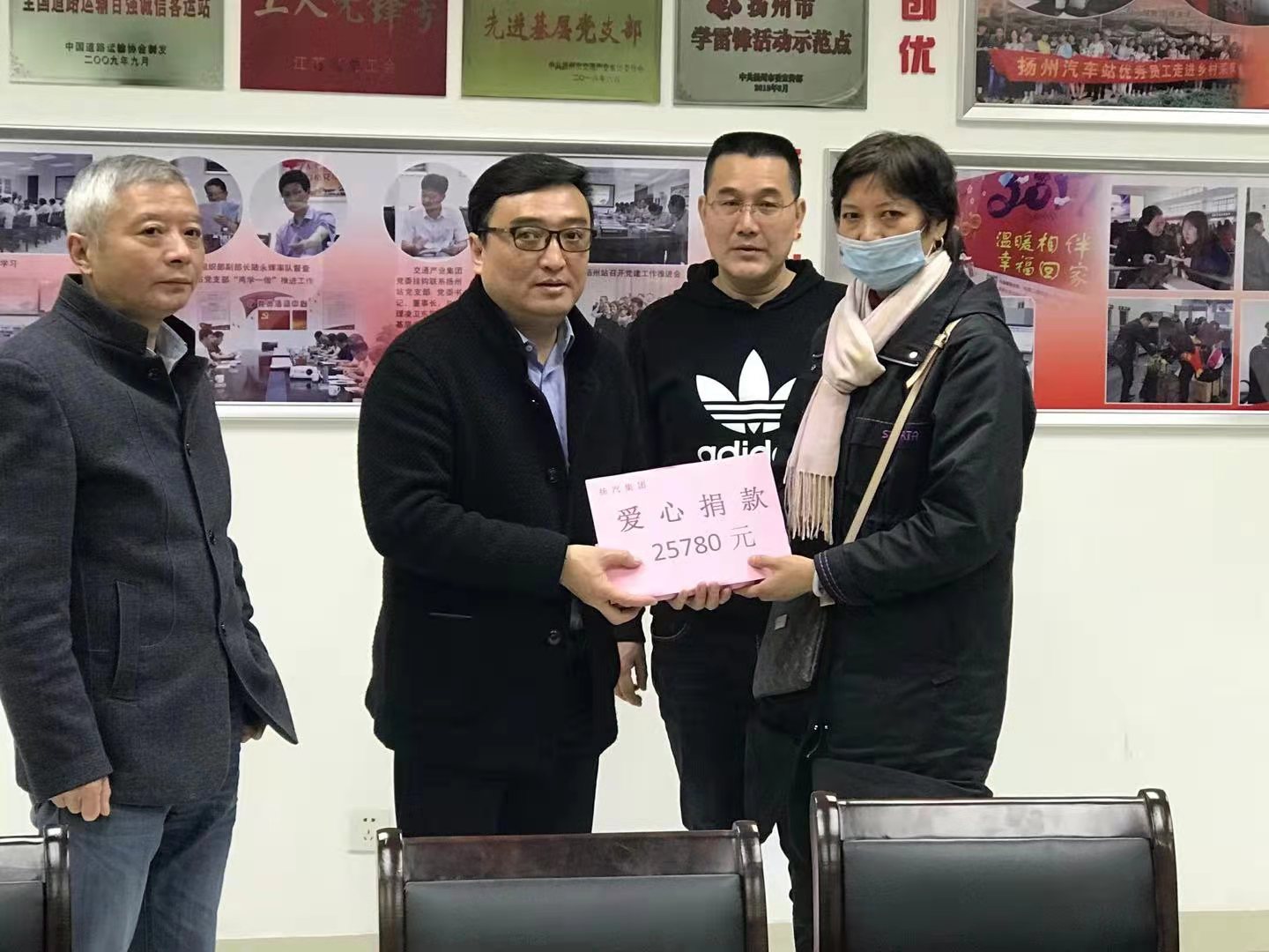 爱心点燃希望,真情传递温暖,今年年初突发精神病的驾驶员马安权一直牵动着全司职工的心。因马安权住在ICU病房无法到院看望,4月6日上午,扬州汽车站工会和车站领导邀请马安权家属来到车站,将募捐到的两万五千多元爱心捐款交到马安权家属手中。