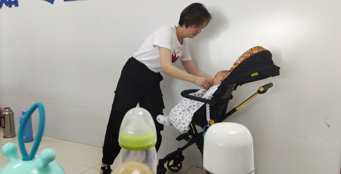 此时,一阵婴儿的哭泣声在人群中显得格外特别,一位推着婴儿车的年轻妈妈满脸神情焦急,四处张望着。招生大厅内工作人员朱玲看到后,第一时间走到她的身边询问情况,原来这位母亲今天是来参加培训的,本来一位朋友说好前来陪同帮忙照看孩子,眼看培训时间就要到了,她的朋友还没有来,一时急的没有办法。朱玲了解情况后,主动向孩子母亲提出:“目前还在疫情防控期间,培训学员较多,带孩子参加不太合适,放在我们这边帮忙照看是比较妥善的办法,我愿意帮忙照看孩子,您就安心参加培训吧。”