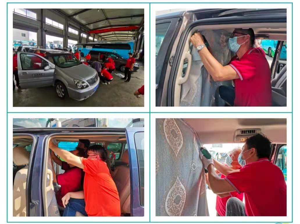 接到紧急指令后,修理厂立即召开会议,并迅速组建项目改造攻坚小组,统筹协调,明确责任分工,细化工作落实,明确改造进度,进行防疫接驳转运车的改造,每辆车都加装分隔帘,将驾驶舱与接驳转运舱隔离。在承接转运的工作人员与乘客间之间,拉起一层保护网,有效切断转运过程中工作人员与乘客间的病毒传播途径,更好的保护人员的安全。