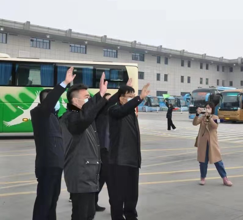 今天是除夕,下午4时,扬州汽车站发车平台上,发往镇江、南京的大巴车整装待发,缓缓驶出车站。这是除夕当天扬州汽车站发出的最后两趟“团圆班车”,10多位乘客搭乘这两趟班车赶回家吃团圆饭。副市长丁一,市交通运输局局长夏正东,市综合运输服务中心主任徐才祥,交通产业集团党委副书记、副董事长、总经理方璇智,交通产业集团副总经理、金沙娱场城app7979党委书记、董事长龚宇峰,金沙娱场城app7979总经理谈卫国、副总经理徐建波及相关负责人为旅客们送行。