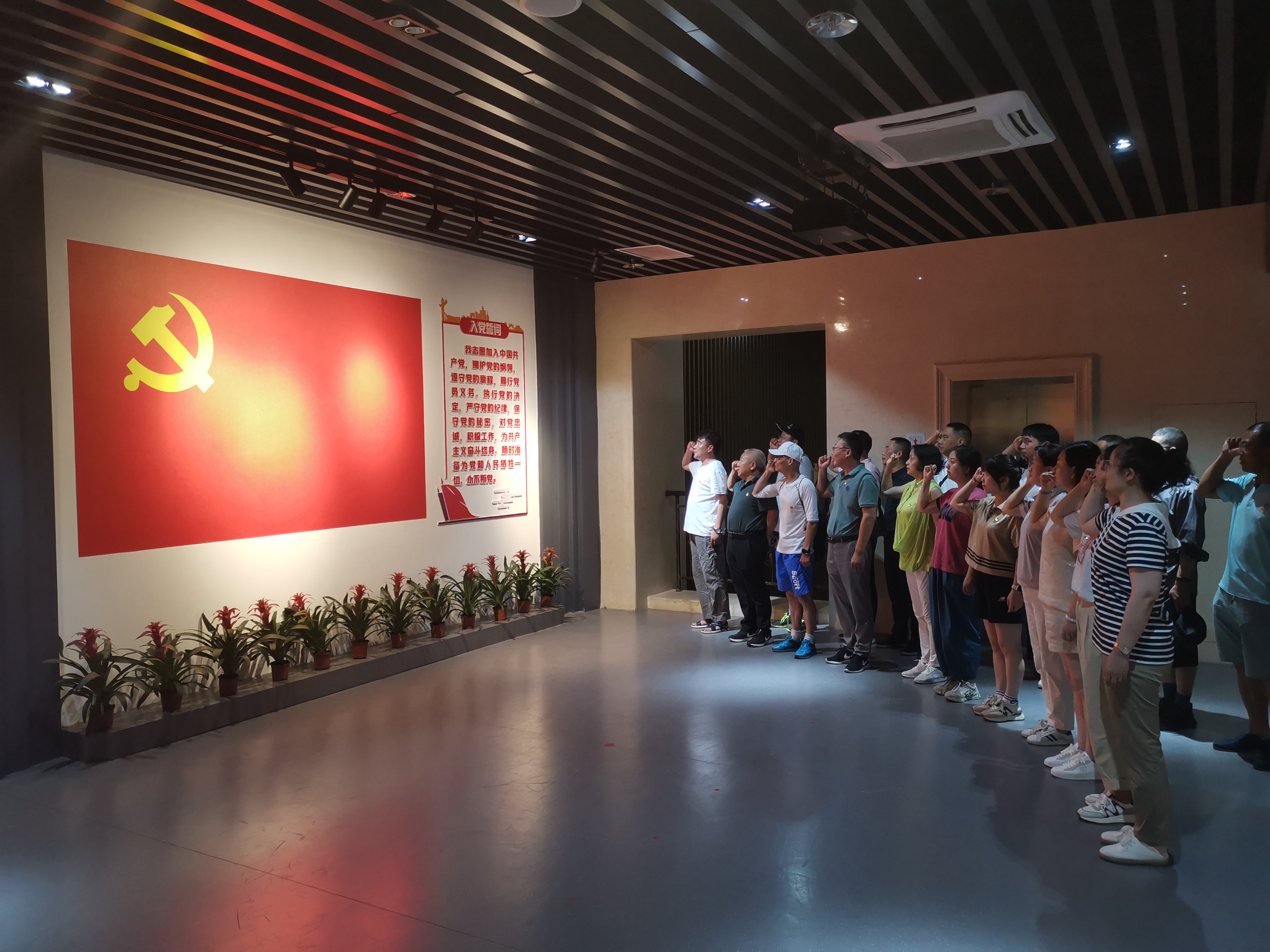 在纪念馆内的宣誓墙前,全体党员向党旗庄严宣誓,铿锵的誓言掷地有声,以饱满的激情和声音发出了身为共产党员的自豪感和使命感,激发着大家干事创业的澎湃热情。